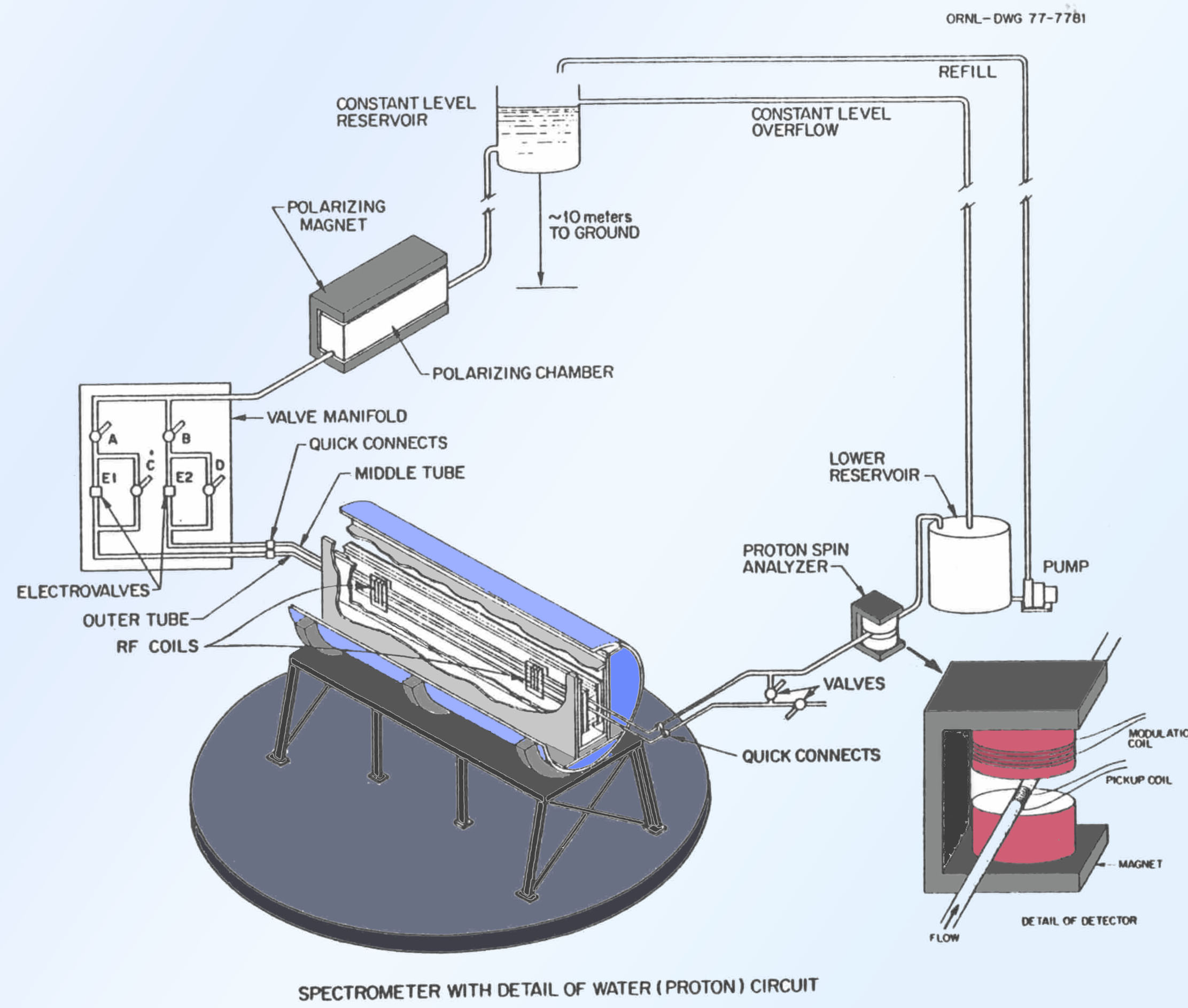Following this work, Ramsey’s efforts bifurcated into two different projects. In the first, Ramsey recognized that the high resolution of the ORNL EDM apparatus could be employed to allow an accurate measurement of the neutron magnetic moment [5] through the use of a clever flowing water NMR calibration procedure suggested by Edward Purcell. Graduate student Geoff Greene, along with Walter Mampe and Mike Pendlebury were successful in modifying the ORNL EDM apparatus and obtained a x100 improvement in accuracy. This was, by the way, Walter Mampe’s first project involving fundamental neutron physics.