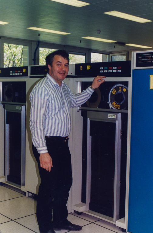 Matching increasing disk capacity cartridge tapes with a serpentine layout, TK70 and TK90, were introduced, and the data archive transferred to a CD-ROM juke-box, reducing need for the 9-track tape systems. During the long shutdown there was a directive from the steering committee to convert all systems at the ILL to Unix. This is described further in Appendix II.