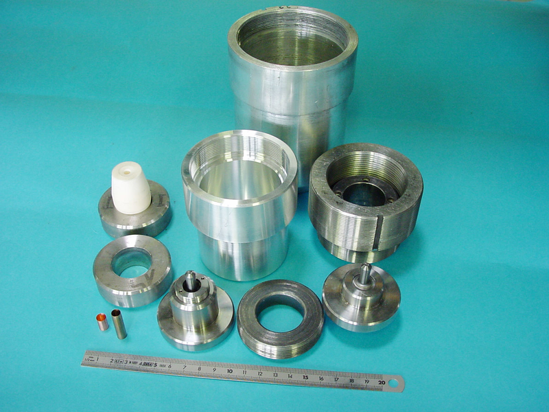 It was therefore decided to produce ‘small’ clamps providing an intermediate range of pressure (10 to 15 kbar at atmospheric pressure, i.e. 1 to 1.5 GPa). The new clamps used Fluorinert coolant to transmit the pressure. Fluorinert is an inert liquid used in clean rooms; it becomes vitreous at low temperatures, remaining hydrostatic in behaviour.