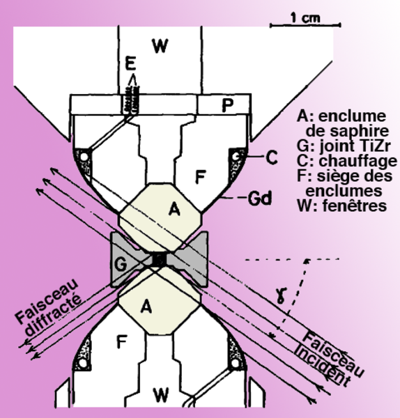 - Werner Kuhs needed a cell for high-pressure crystal-structure determination thus both compact enough to accomodate the eulerian cradle of a four-circle neutron diffractometer and with a very wide angular opening. Together with H. Ashbars, he successfully adapted a tried-and-tested X-ray diamond anvil design, replacing the diamond with sapphire (Al2O3).
