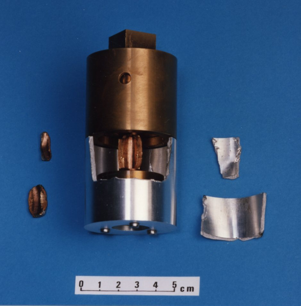 These cells were known familiarly as "bombs" - they had a tendency to explode when exposed to high pressure. Raoul Mathieu (ILL), C. Vettier and J. Paureau therefore performed a series of safety tests before allowing the devices to be used on the ILL instruments. Christian Vettier remembers: