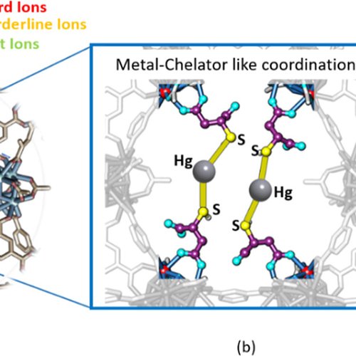 For this project, the researchers decorated the pore space of zirconium trimesate (MOF-808) with eight different amino (histidine, cysteine and asparagine) and natural acids (malic acid, mercaptosuccinic acid, succinic acid, fumaric acid and citric acid) in order to explore the influence of each organic chelator on the metal-ion adsorption capacity and specificity of the parent MOF-808 material. “The idea is that water contaminated with metals passes through this specially-designed metal-Chelator-like filter formed by decorating a MOF with amino or natural acids,” explains Jiménez-Ruiz. “The metal ions in the water form a weak interaction with the amino acid thus cleaning the water. The metal and MOF can then be separated enabling the recovered metal to be recycled and the MOF reused.”