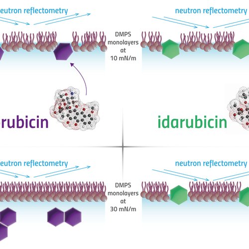 The combination of multiple powerful characterisation techniques enabled new insights to be revealed about how two different anthracycline drugs interact with pure and mixed lipid monolayers. The findings improve our understanding of key processes that determine the uptake of drugs, providing information that could contribute to the future design of more effective therapeutic strategies. The experience gained by the researchers, meanwhile, has been dedicated to further investigating model membrane interaction of statins, a commonly prescribed drug to lower cholesterol levels in blood, involving neutron reflectometry experiments at both the ILL and the ISIS Neutron and Muon Source (UK).