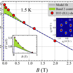 The demonstration of two-band superconductivity in a second material also now confirms monochromatic SANS as the definitive go-to method to characterise multiband superconductivity in a material, in addition to the strength of continuous neutron sources for this area of research. “At the ILL, the experiments were carried out on the D33 instrument which has two modes: monochromatic, using one wavelength, and time-of-flight which uses a range of wavelengths,” explains Cubitt. “For this type of experiment, the monochromatic mode enables the neutron wavelength and angle to be tuned such that every neutron contributes to the Bragg peaks.” In contrast, at pulsed neutron sources, equivalent to the time-of-flight mode, the vast majority of neutrons would measure nothing and only contribute noise, making such an experiment certainly more difficult and less efficient.