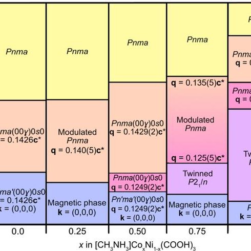 Reference: Tuning structural modulation and magnetic properties in metal–organic coordination polymers [CH3NH3]CoxNi1-x(HCOO)3, Madeleine Geers et al., IUCrJ, 2024