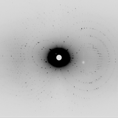 Neutron diffraction data were collected on the ILL instrument LADI-III, a Laue diffractometer for biology research at high resolution (1.5 - 2.5 Å). LADI-III uses a large cylindrical area detector composed of neutron-sensitive image-plates that completely surround the crystal and allow large numbers of diffraction spots to be recorded simultaneously. A range of neutron wavelengths from 2.85–3.80 Å was used for data collection, with four different crystal orientations sampled and a total of 57 images collected. The principle is as follows: the neutron beam is diffracted from the atomic nuclei within the crystal producing a pattern of diffraction spots. As there is a specific relationship between the 2D diffraction pattern and the 3D structure within the crystal, scientists can use the information in these patterns to determine the 3D structure, including the all-important hydrogen atoms.