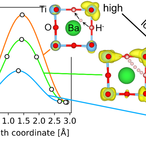 Using density functional theory calculations, researchers from the ILL and Chalmers University of Technology (Sweden) modeled how hydride ions diffuse under different conditions. By comparing several scenarios ranging from strongly localised to fully delocalised electrons, they quantified how electron localisation affects the energy barrier that a hydride ion must overcome to move from one site to another.
