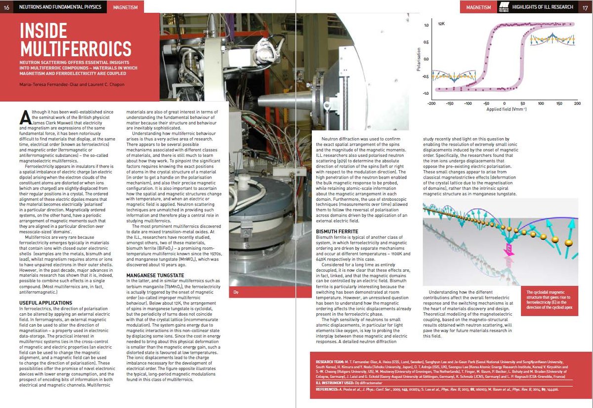 This was determined using neutron diffraction at the instrument D20 at ILL: the antiferromagnetic diffraction peak is monitored, while heating the sample inside a furnace, to determine the temperature at which magnetic ordering breaks down. Further experiments at ILL are planned for the future, where the composition of the ceramic materials containing BiFeO3 will be modified to achieve higher concentrations of multiferroic clusters in the material.