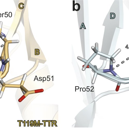 In this study, the scientists have investigated normal human transthyretin alongside two variants of the protein (mutants that are found in different parts of the population). One of these (the T119M or ‘stable’ mutant) imparts remarkable stability to transthyretin and is strongly protective against the formation of amyloid fibrils. However the other (the S52P or ‘unstable’ mutant) results in a very aggressive form of hereditary amyloidosis.