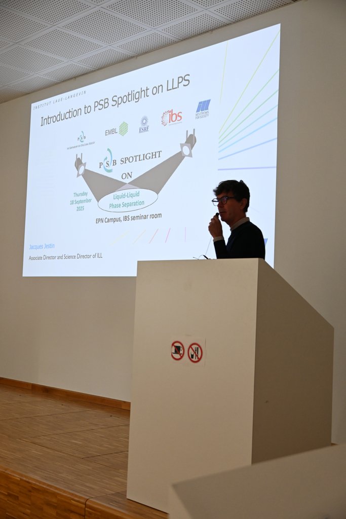 ILL Science Director Jacques Jestin opened the event, outlining how the new ILL Science Strategy will foster research in the field through the creation of a Science Hub on LLPS focused on problems relevant to human health and pathology. The Hub will consolidate internal expertise and strengthen collaborations with the Institute of Structural Biology (IBS) and the European Molecular Biology Laboratory (EMBL).