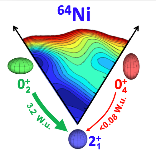 In a recent paper in Physical Review Letters (2020), researchers from Europe, USA and Japan studied the phenomenon of coexisting shapes in the nucleus of 64Ni. This intriguing nucleus belongs to the semi-magic Nickel isotope chain and is close to the doubly magic 68Ni system, thus allowing researchers to systematically study the deformation landscape along the nuclear chain.