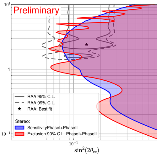 The STEREO detector is installed since end of 2016 at 10 m from the core of the reactor of the ILL in Grenoble, France. It measures precisely the rates and energy spectra of the neutrinos emitted by the core in 6 identical detector cells. If a 4th neutrino exists, it will “oscillate” with the standard neutrinos, inducing a unique pattern of spectral distortions from one cell to another. However, the spectra measured in the 6 cells of the STEREO detector have compatible shapes and need a very careful analysis. The present result significantly shrinks the domain of existence of the 4th neutrino (Figure 1). As STEREO continues taking data it will improve its sensitivity and test the surviving zone, toward even smaller expected amplitudes of oscillations.