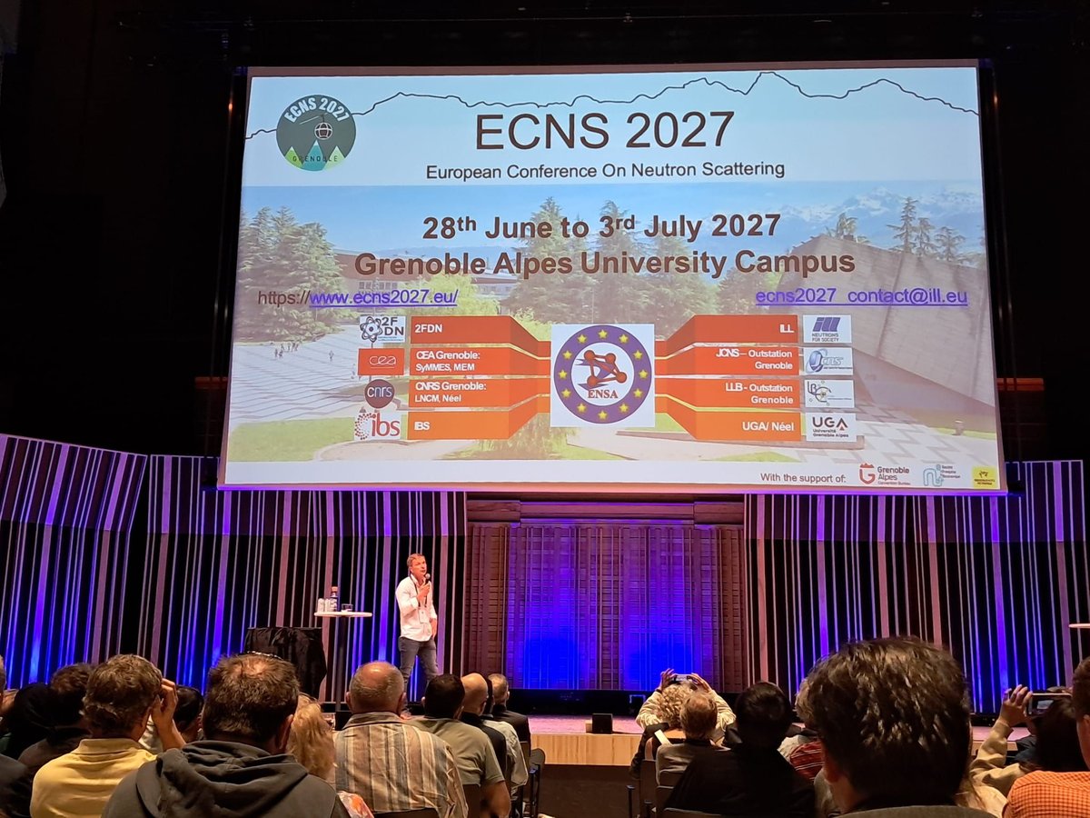 On behalf of the Organising Committee, Martin Boehm announced that the next European Conference on Neutron Scattering ECNS2027 will be held in Grenoble - precisely in the very special year in which we will celebrate 70 years of neutrons in Grenoble and the 60th anniversary of the ILL.