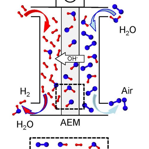 In the case of fuel cells, there is increasing focus on designs based on so-called anion exchange membranes (AEMs) that allow OH- ions to pass through. An important reason is that the electrodes in AEM cells do not need to incorporate platinum or other expensive noble-metal or rare-earth catalysts to work, as required by designs using so-called proton-conducting membranes that rely on the transport of H+ ions. However AEM technology is less well-advanced – the membrane stability needs to be improved as does overall cell performance.