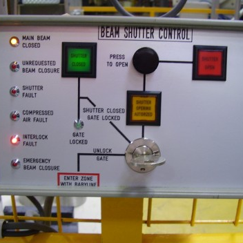 Nb: The beam opening authorisation button is activated during a short time which varies according to the instrument, so you must close the gate as soon as you have pressed the green button.