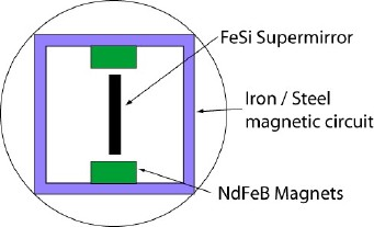 Schematic representation and magnetic field circuit of the polariser mirror housing.