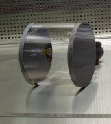 A relatively new development on D22 is the provision for 3He spin analysis. With the neutron optics group we have bought one of the largest 3He cells available for neutron scattering experiments consisting of a cylindrical quartz tube of lengths 10 cm or 15 cm with 12 cm diameter single crystal Silicon faces, as shown in figure 7a. A large area cell is necessary, and should be positioned close to the sample so as to cover as large a solid angle as possible. At the same time the cell should be positioned as far as possible from any magnetic sample environment so that stray magnetic fields do not to depolarise the cell. The existing instrument configuration and spaces available dictate that the 3He cell in its large "magic-box" homogeneous field cavity should be positioned up against the large gate-valve within the main detector vacuum tank. We have made a prototype installation and tests of a 3He cell installed in the detector tank and mounted on a translation table so that it can be moved in and out of the scattered beam. Cable connections for the magic-box power supply and integrated RF3He flipper are passed though vacuum feed-through connectors, as shown in figure 7b. This is apparatus must be removed from the detector tank for non-3He analysis experiments. Care must also be taken to ensure the detector does not advance closer than ~4 m from the sample to avoid collision with the table. There is currently NO hardware safety stop installed to prevent this.
