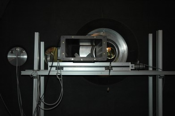 3He cell with 12cm Ø single crystal Silicon windows. The 3He cell sits inside the "magic box", all under vacuum inside the D22 detector tank. The magic-box assembly can be translated in and out of the scattered beam.