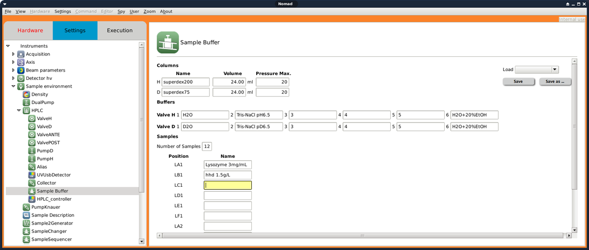 - HPLC controller tab to set the chromatography parameters with up to 4 wavelength for absorbance measurement and the options to equilibrate the non-eluting column, to slow down the elution at a specific absorbance threshold to enable SANS data accumulation and to collect eluted fractions