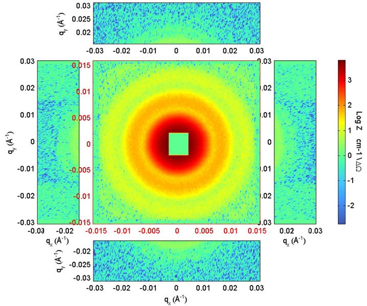 The sample is a typical latex spheres sample in D2O measured in both Monochromatic and TOF modes for the same time taken.