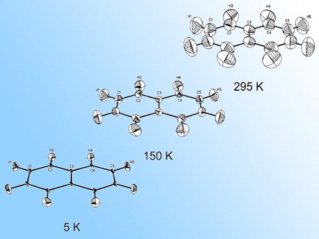 The aim of this case study was to measure the anisotropic displacement parameters (ADPs) of carbons and hydrogens and to interpret them using the model of thermal motion proposed by Bürgi and Capelli (Acta Cryst. 2000, A56, 403). The traditional rigid-body analysis expresses the low frequency motions in terms of molecular translations and librations only, whereas the Bürgi-Capelli treatment also includes the high-frequency internal modes.