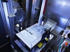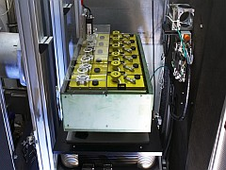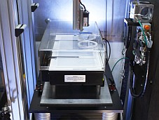 Adsorption troughs are used as a platform to study interfacial layers of molecules self-assembled from solution. The troughs assembly involves six sample positions each of which contains a PTFE trough of dimensions 220 mm x 50 mm. The volume required are 45 ml for liquids of high surface tension (such as water) and 25 ml for liquids of low surface tension (such as a concentrated surfactant solution). There are 20 trough inserts available so that some can be cleaned while others are in use. The alignment of samples is done through the instrument control software using a high-precision height sensor. The neutron windows (sapphire) and height sensor window (quartz) are all heated gently to avoid condensation. The option exists to heat the liquid in each trough with a dedicated strip heater, and there is also an option for three troughs to be connected to a thermostated water bath which is useful for cold measurements. The former heating option has not been fully commissioned yet, so for measurements away from ambient temperature please make this requirement clear to the instrument team well in advance of your experiment.