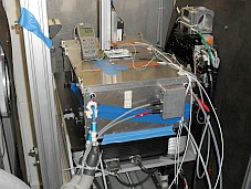 There are also borated (poorly reflecting to neutrons) glass plates which can sit in the large trough to reduce the volume by about one third without any detrimental effect to the maximum compression ratio that can be obtained. There are two boxes for the trough to sit in. The first is a essentially a dust cover where the pressure sensor sits on an aluminium bridge above the free liquid surface. There are sapphire windows for the neutrons and optical sensor which are heated to prevent condensation. The second box is an air-tight reaction chamber provided by Dr Christian Pfrang (Reading University, UK) suitable for gas phase reactions.