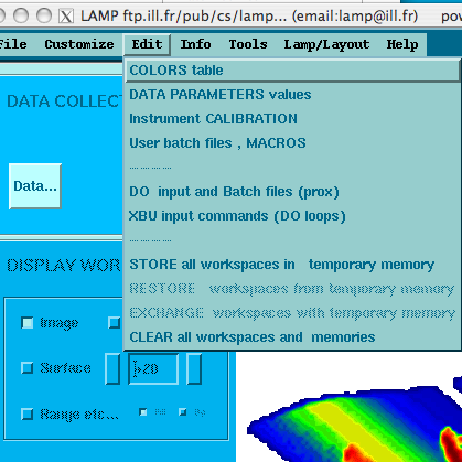 All the operations made previously within INX (or equivalent software) can be made within LAMP. A "prox" template is accessible from LAMP: standard1.prox through the "Users batch file, MACROS" menu. The different steps of a standard data reduction are explained in the file. All the steps are not compulsory depending on the type of data reduction expected (S(2θ,ω) or S(Q,ω),... ). Comment or remove the unwanted lines of the prox in your working directory.