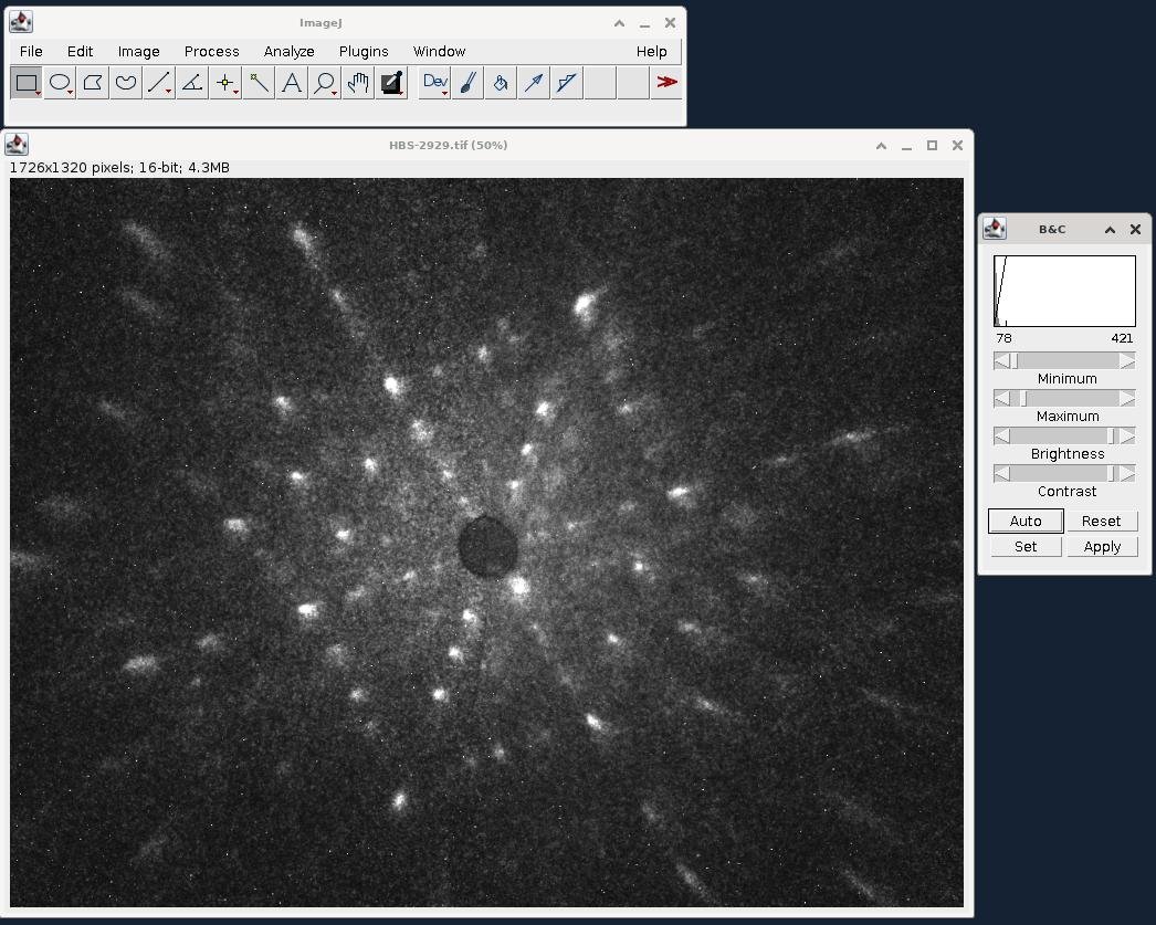2.     From the ImageJ menu, choose Image : Adjust : Brightness to open a window.