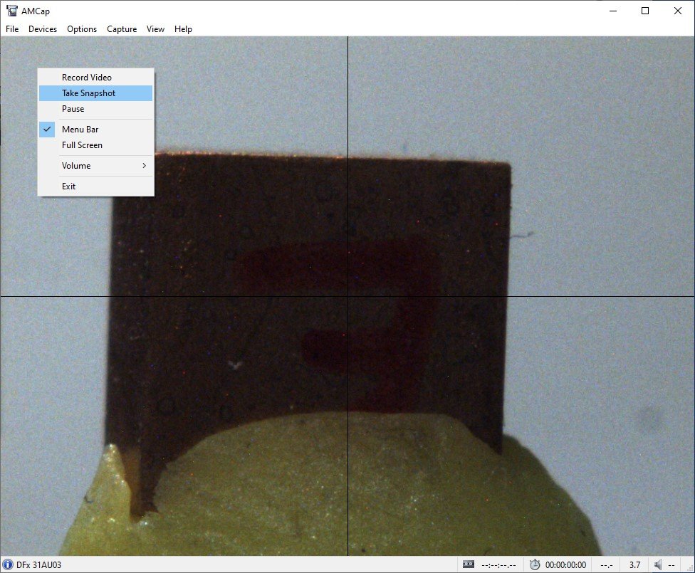 The AMCap software can be used to take a photograph of the sample on the instrument.