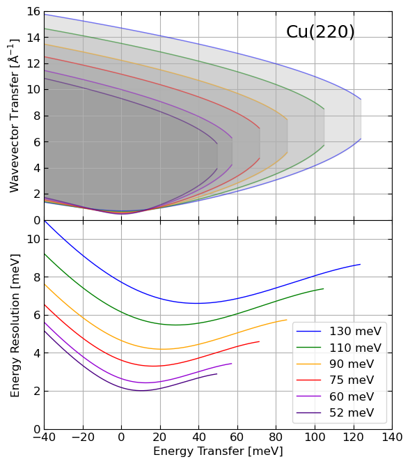 | Cu(220) | 52-130 meV |