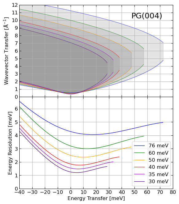 | Graphite(004) | 30-76 meV |