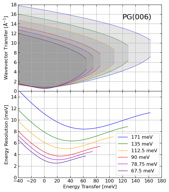 | Graphite(006) | 67.5-171 meV |