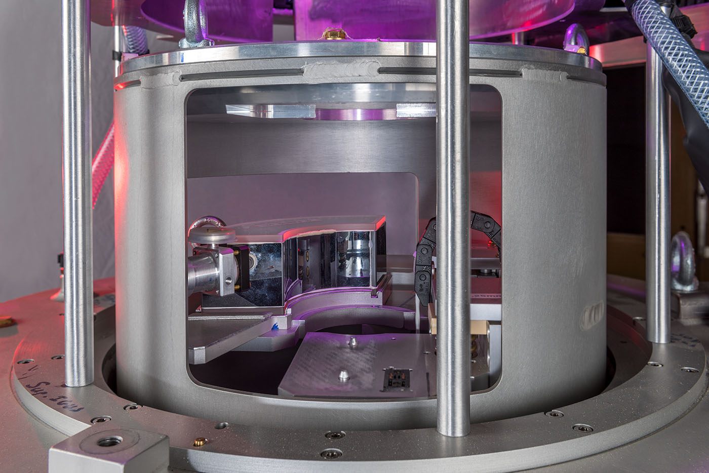 - A close view of PASTIS3 installed on IN20, showing the 3He cell in position. PASTIS3 is the assembly which, on the TAS spectrometer, makes it possible to polarise and analyse the neutron beams.