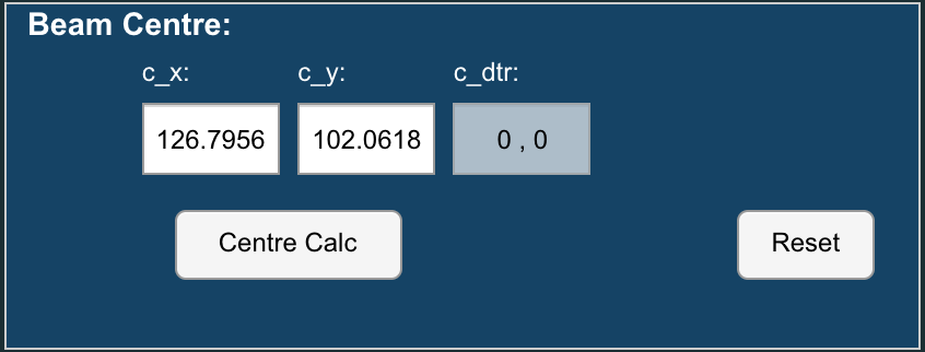 - Click 'Centre Calc'. Grasp will cycle though the worksheet depth and calculate a beam centre for the three instrument configurations.