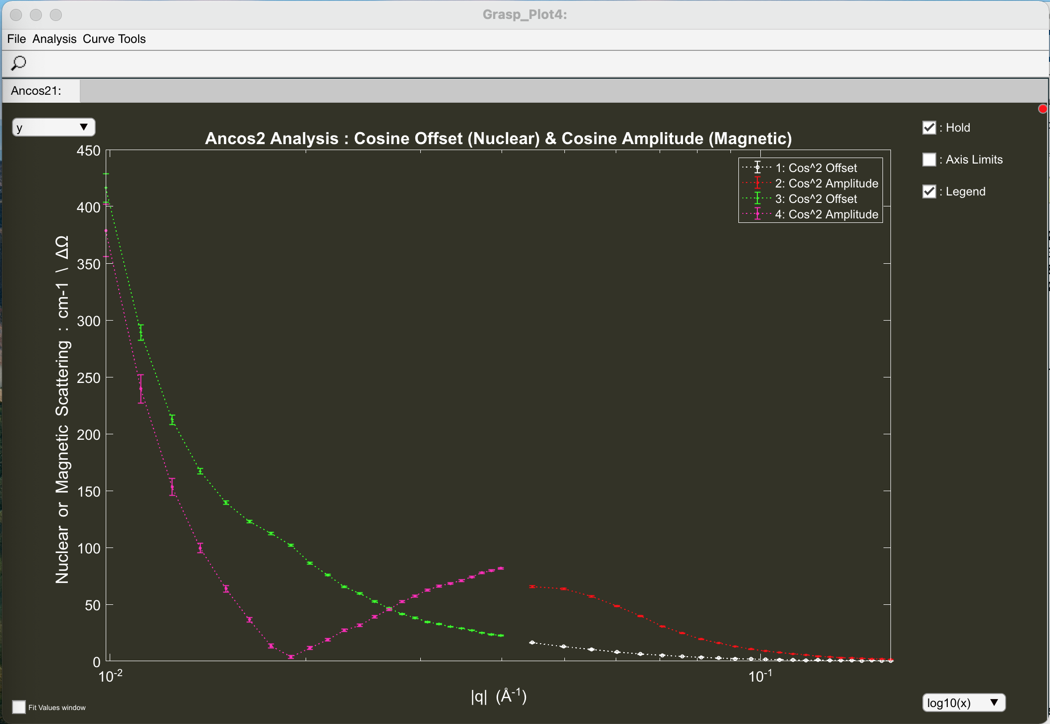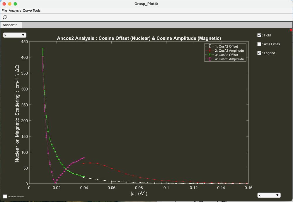 - Automated 'Ancos2' cosine2 fitting around the detector as a function of |q|