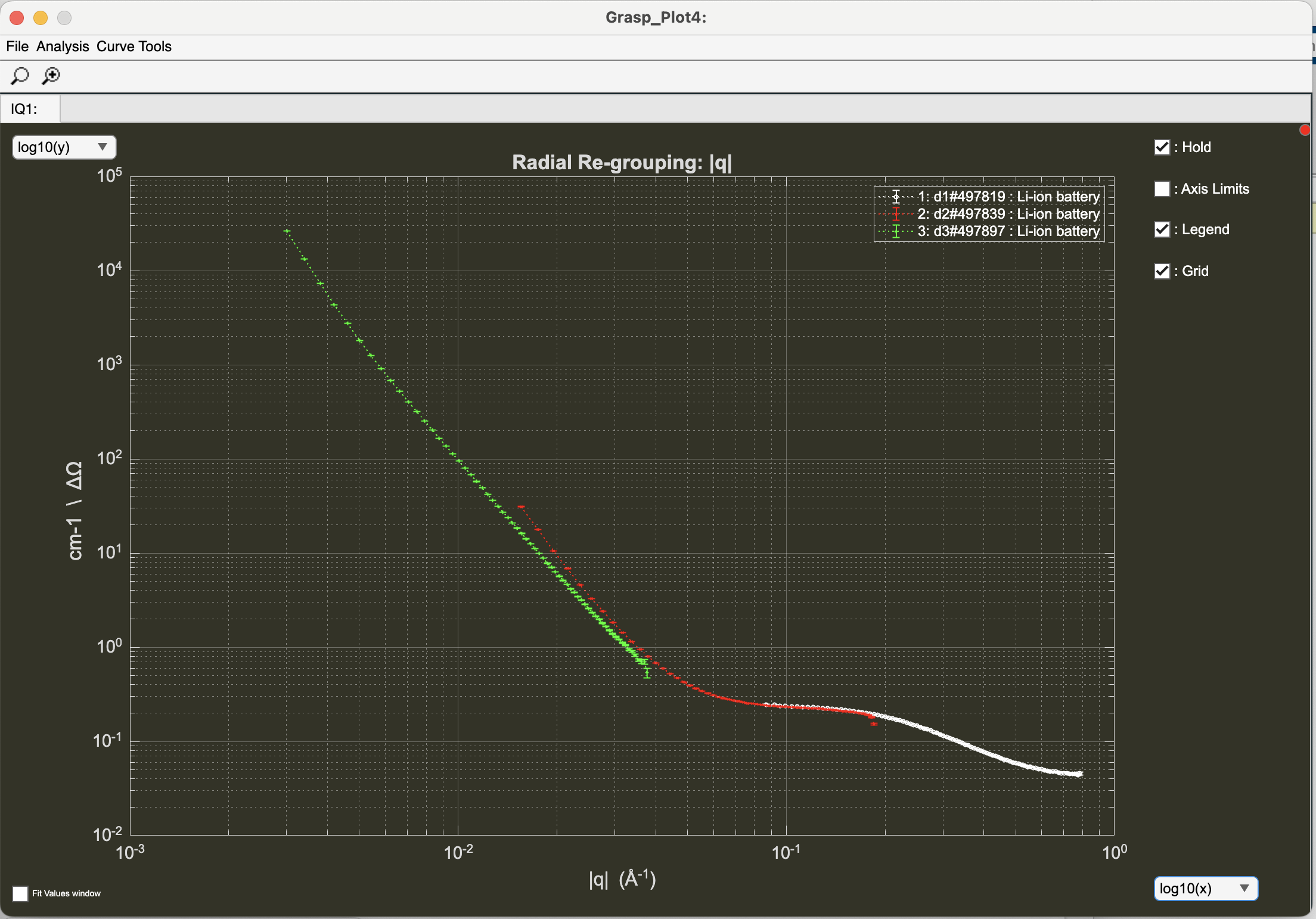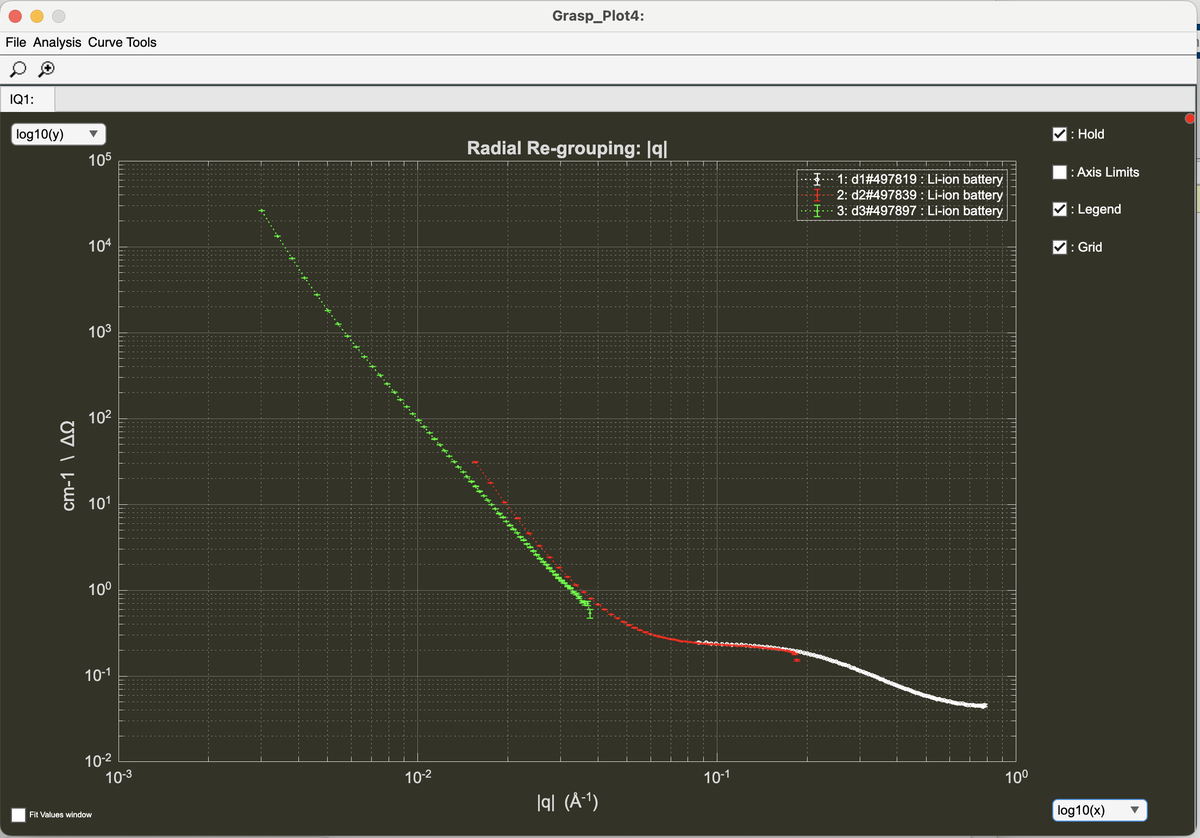 - Return to the main Grasp interface to find fully corrected data scaled in absolute scattering units.