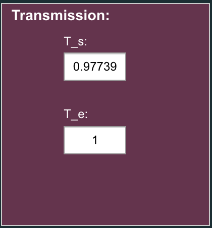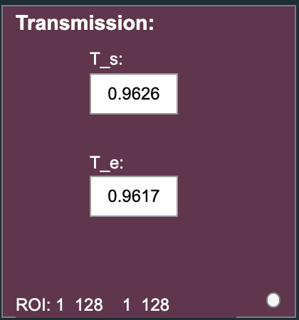 - Click the Trans Calc' button to calculate the sample transmission, Ts. This is the transmission of the sample relative to that of the empty sample holder.