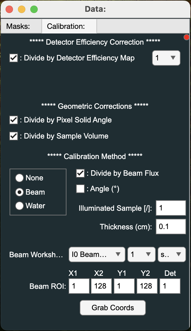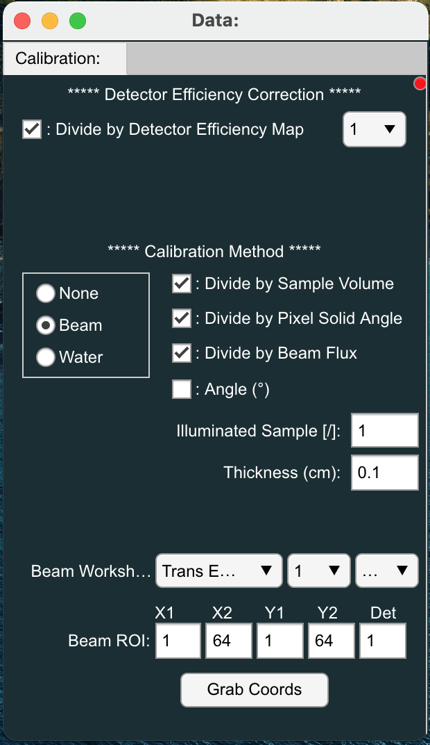 - 'Divide by Beam Flux'. Enables the direct beam scaling as described above.