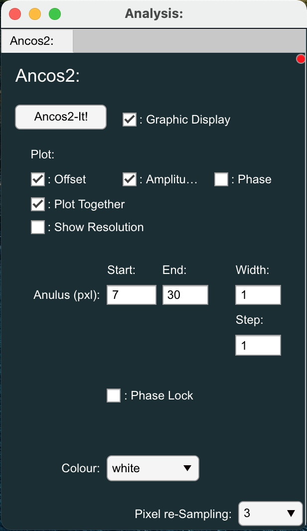 - Open the 'Averaging: Radial & Azimuthal' window from the 'Analysis > Averaging: Radial & Azimuthal' menu (shortcut CTRL-R [Windows/Linux], CMD-R [Mac]).
