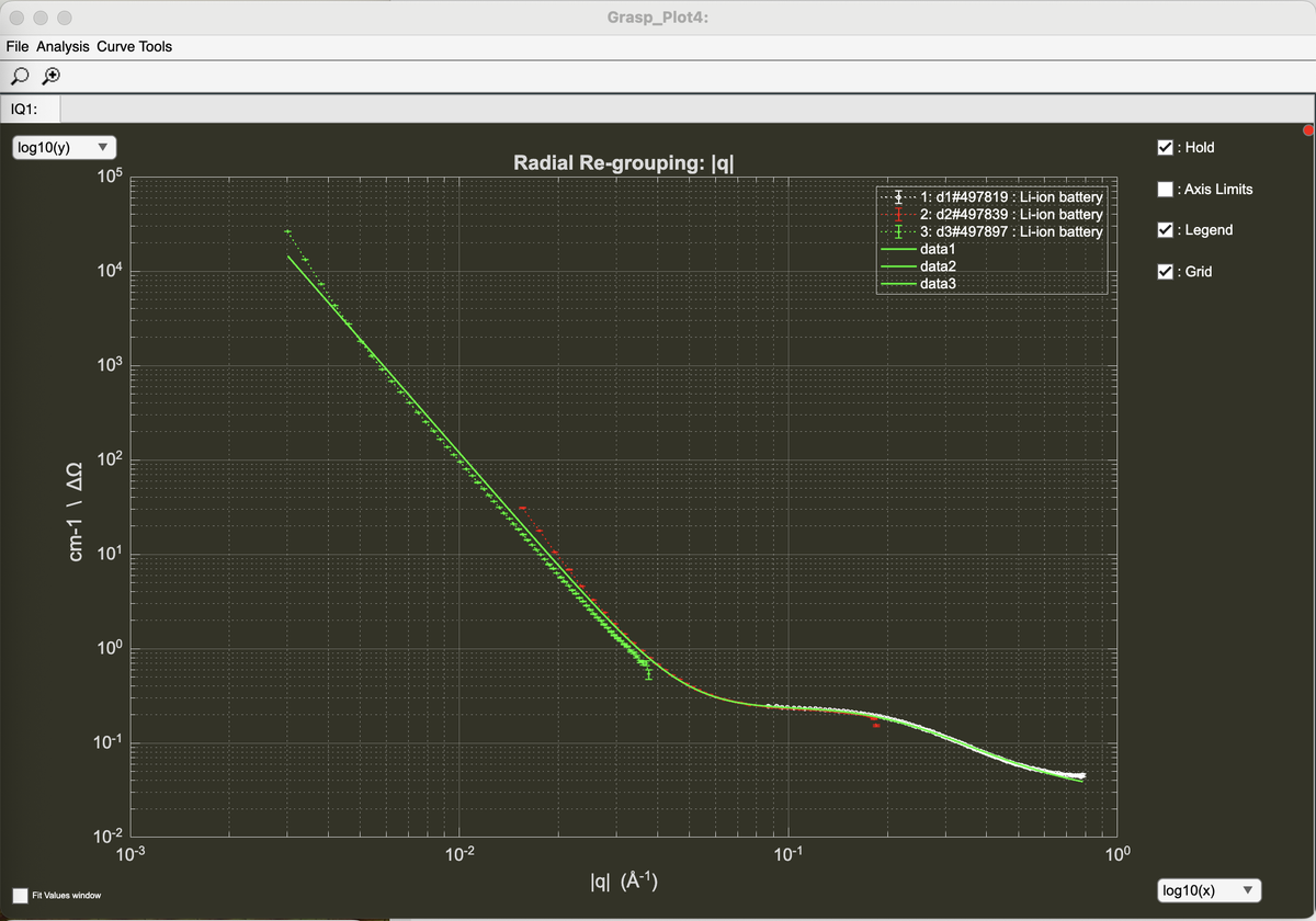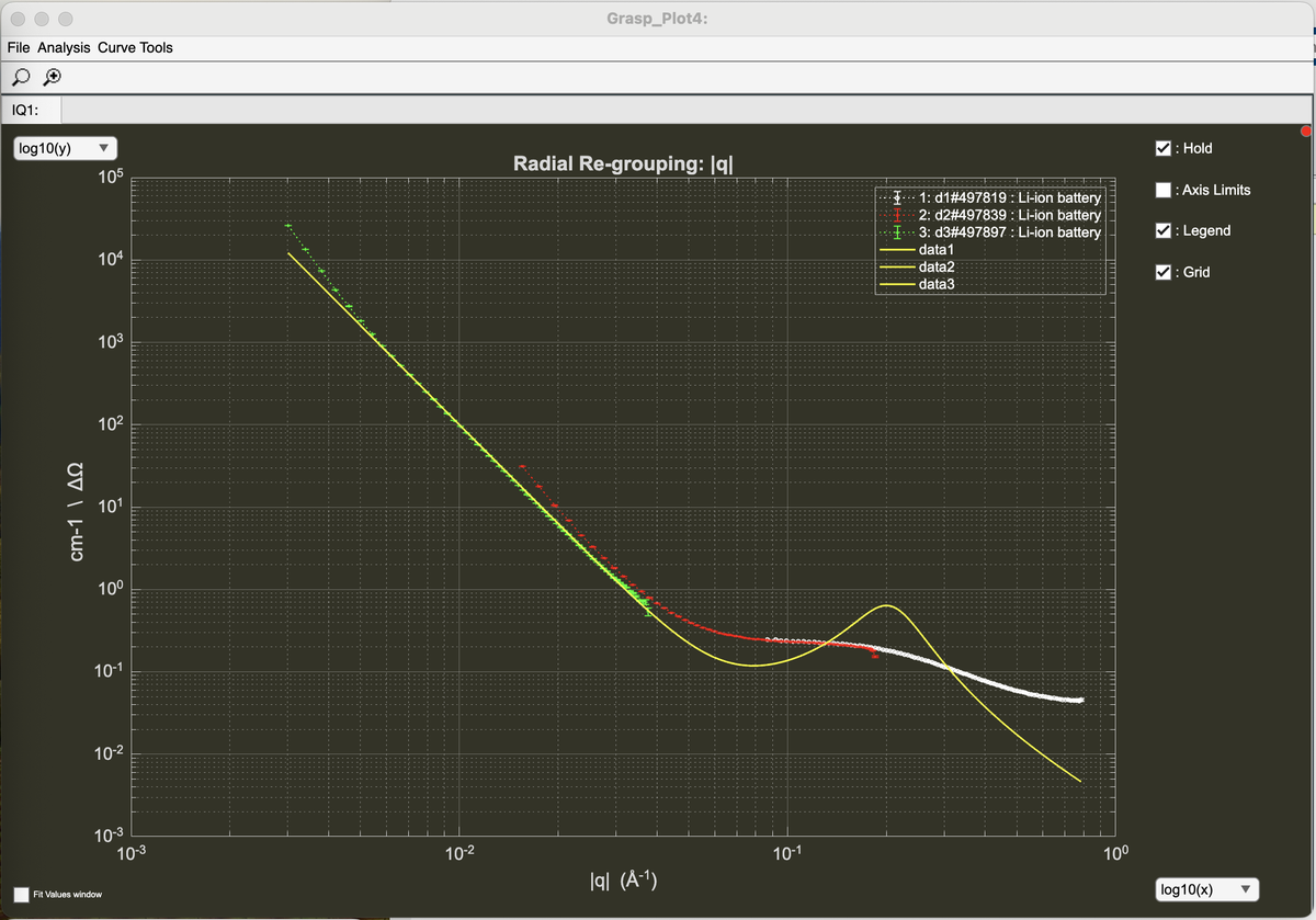 One of the methods for analysing and parameterising the measured scattering curve from hard carbon samples involves the fitting of a Lorentzian + 1/Q^4 (Porod) function.