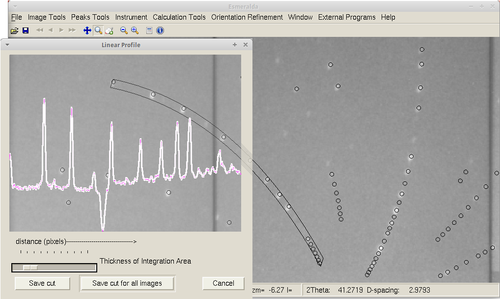 - integration of Bragg peaks using procedures which account for the overlap of close reflections. This can be performed either automatically or manually.