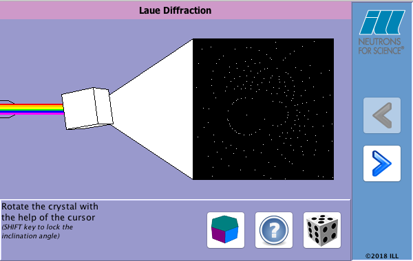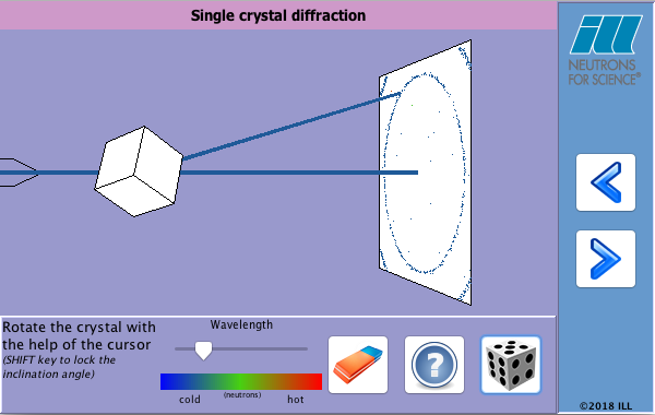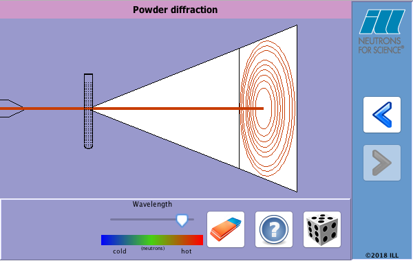 This demonstrates how a powder diffraction pattern is produced and you can see the influence of the wavelength of the beam on the resulting pattern. - Magnetic diffraction