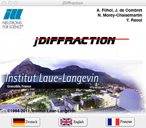 v2.3.2 (2018) - Starting screen: update of version number, dates and ILL logo. macOS: the application name "StartScreen" is replaced by "jDiffraction". (Yannick Raoul and A. Filhol)