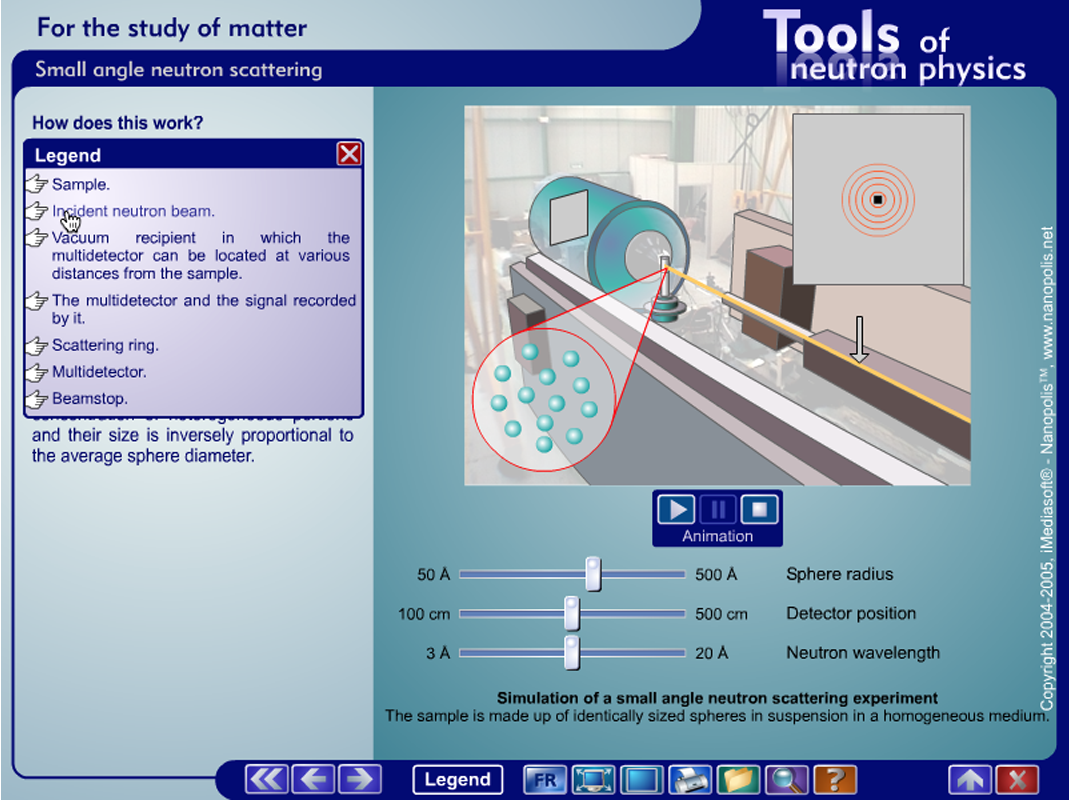 Exploring matter with neutrons is no longer available commercially but most of its content is still relevant. It is reproduced here by permission of Alain FILHOL and Dan BOG. It owes much to the work of Coralie Bagès (ILL), who did a wonderful job "resurrecting" the old source files and Laurent Thion (Ecliptique) who made some corrections in the old Flash files.