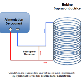Une bobine supraconductrice d’un cryo-aimant est une bobine dont la résistance est nulle. Cette propriété remarquable implique que si on met un courant dans cette bobine, ce courant ne se dissipe pas dans la bobine, il tourne donc dans les spires à intensité constante.