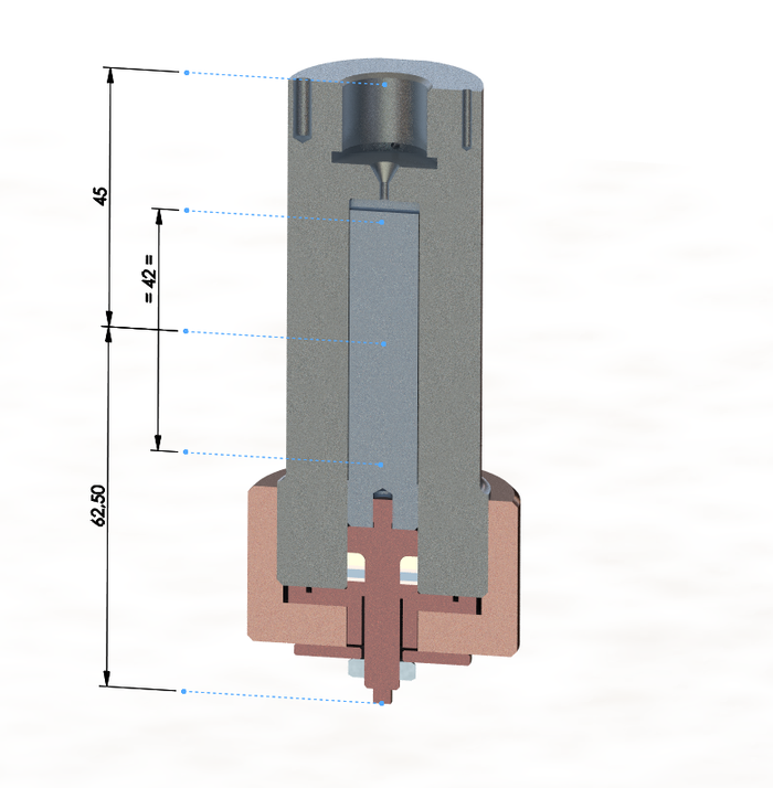 This cell is made from the aluminium alloy 7049A-T6 and provides a Ø12 x 56 mm3 sample volume, i.e. 6.3 ml. A separator may be used when the amount of available sample is low (6 ml required).