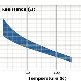The best accuracy is obtained by using the CX-1030 reference values below 30K and the the PT-103 values above. To measure temperature from a Cernox sensor, a Chebychev polynomial fit to the measured calibration data is used to convert the sensor resistance to a temperature. We perform calibration fits in the ranges 1.3 - 14K, 14 - 82K and 82 - 325K and produce a LakeShore 340 ASCII file containing 200 interpolation points between 1.3 and 330K (a fewer less points if the temperature range cannot be fully covered by the cryostat used). We also produce a plot of the calibration curve in PNG format. On request, we can also supply the fitting parameters of the Chebyshev polynomials.