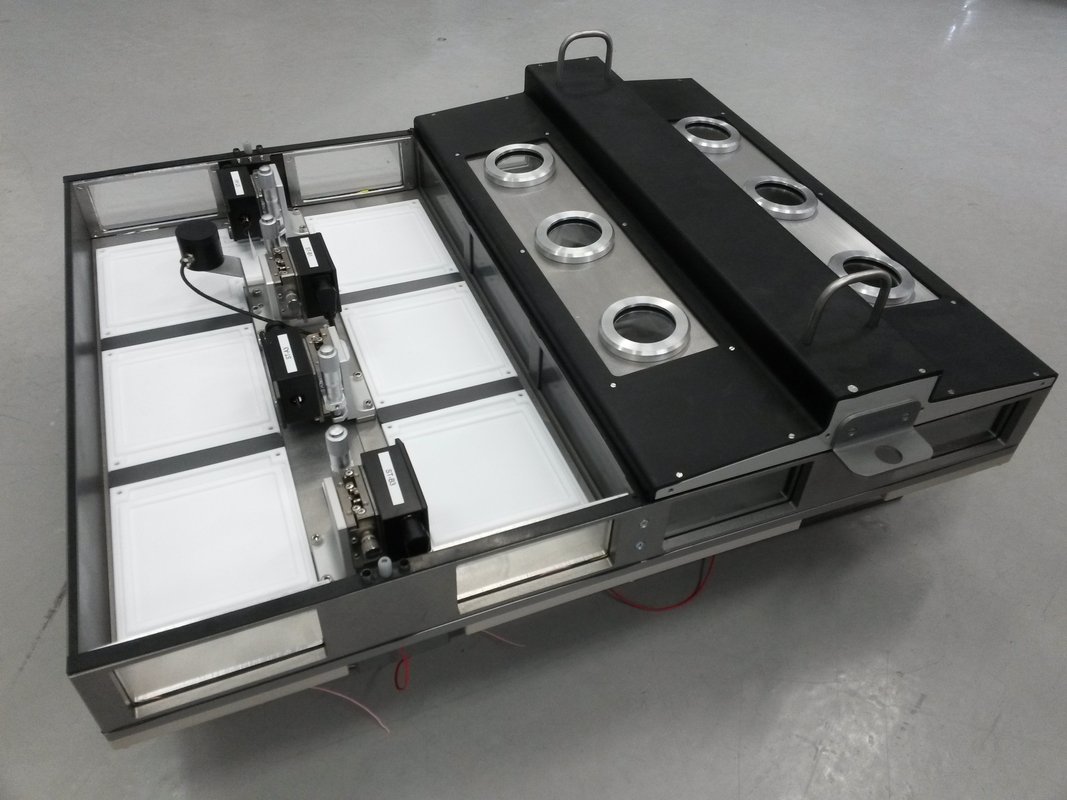 The sample temperature is monitored with compact contactless pyrometers and controlled with a thermostatic bath. To ensure relatively rapid temperature changes while ensuring a perfect flatness, the troughs are made from hard aluminium. Coated with PTFE, they enable easy cleaning without any contaminating glues or coatings.