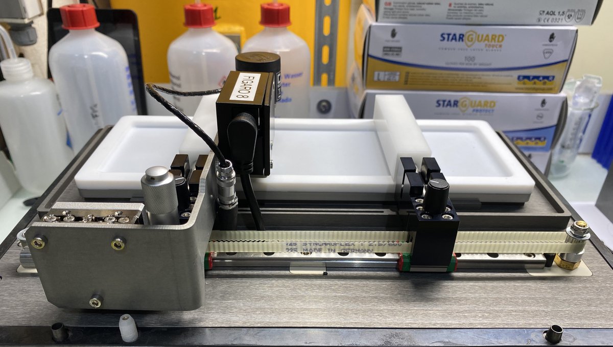 This Langmuir trough 09LTQZ70, optimised for the horizontal reflectometer FIGARO, is based on a Microtrough G1 by Kibron. The sample temperature is monitored with compact contactless pyrometers and controlled with a thermostatic bath. To ensure relatively rapid temperature changes while ensuring a perfect flatness, the troughs are made from hard aluminium coated with PTFE to enable easy cleaning without any contaminating glues or coatings.